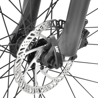 Tektro aluminium hydraulic disc brakes with 160 millimetres rotors deliver precision stopping power in all on road and offroad conditions.